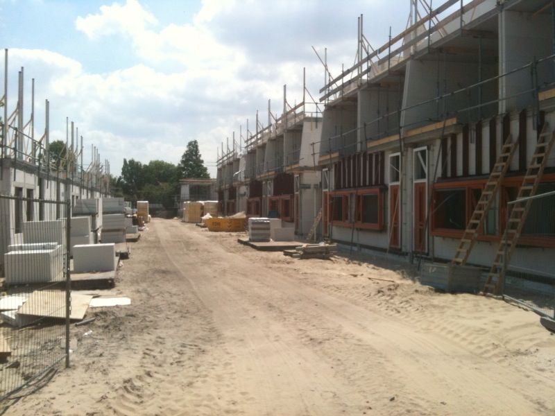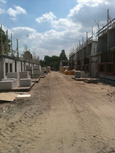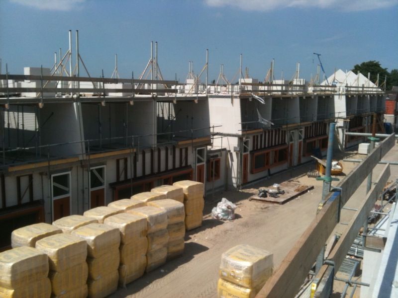 Verschillende foto's waarin Rogé Metselwerken machinaal aan het lijmen is.